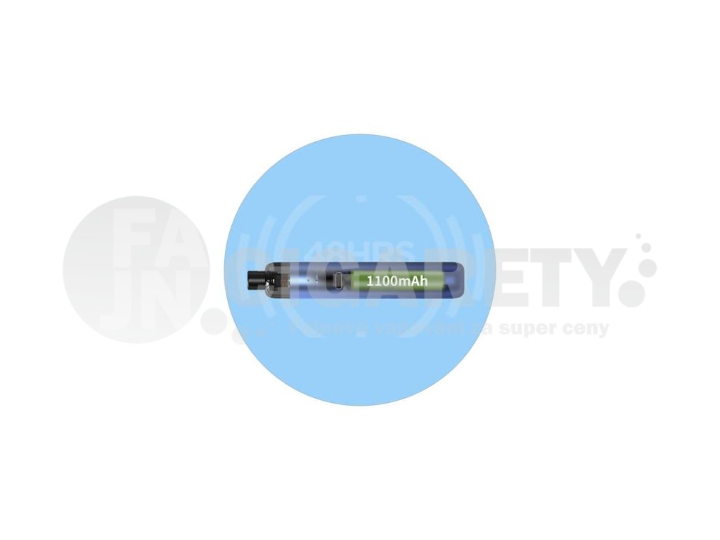 Uvnitř těla e-cigarety se nachází integrovaná baterie se solidní kapacitou 1100 mAh. Ta se postará o dlouhé hodiny nerušeného potahování a zároveň dodá e-cigaretě potřebný výkon pro použití jednoho ze tří režimů intenzity výstupu. Baterii můžete kdykoliv pohodlně dobít přímo na těle připojením USB-C kabelu. Lze dobíjet proudem až 1 A.