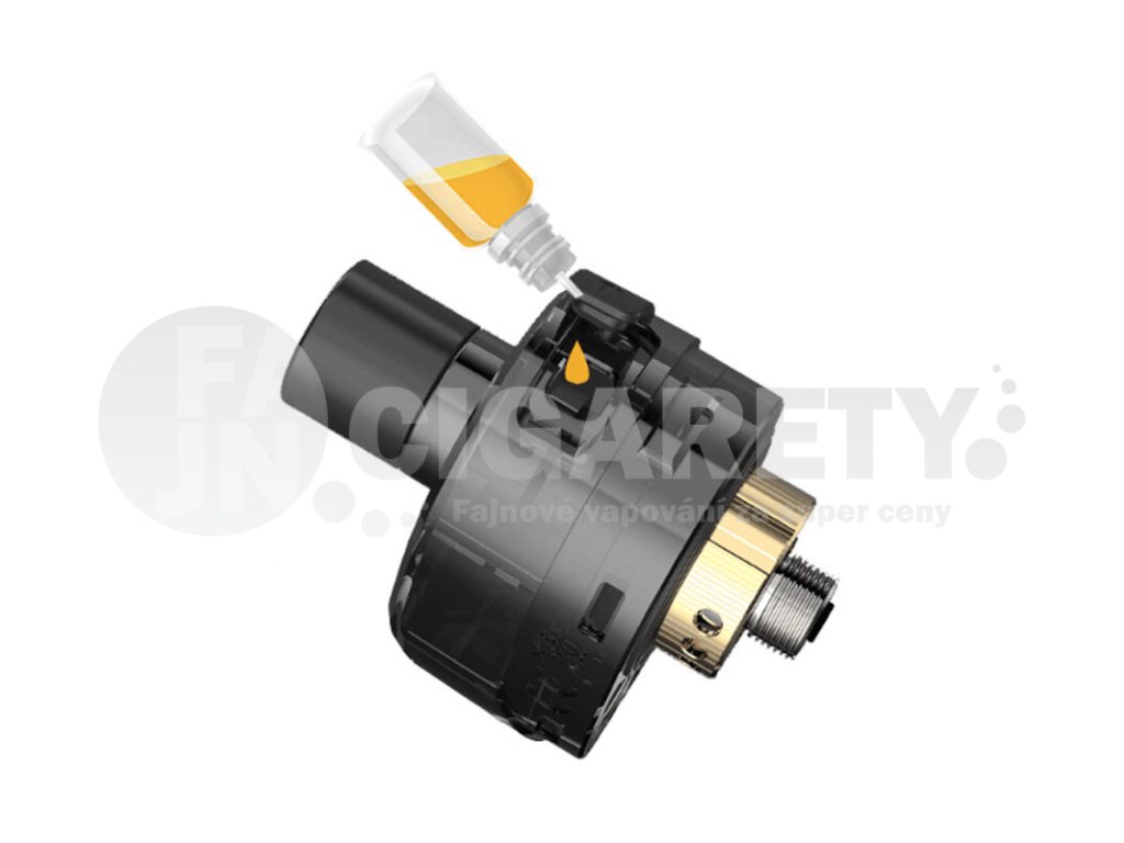 Ve vrchní části je k tělu baterie připojena cartridge s obrovským objemem a vyměnitelnými žhavícími tělísky. Objem této cartridge činí 4,5 ml. V její přední části se nachází plnící otvor zakrytý silikonovou záslepkou pro rychlé a snadné plnění. Spodní část cartridge je opatřena kroužkem pro regulaci přísunu vzduchu do cartridge. Ve vrchní části cartridge najdete vyměnitelný náustek, přičemž v balení se nachází náustek pro MTL i pro DL vaping.