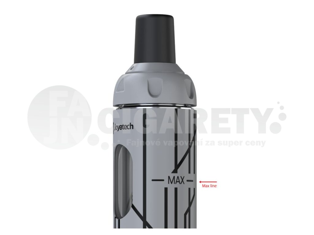 Odšroubováním vrchního uzávěru s náustkem a tělískem zpřístupníte samotný tank. Ten nabídne objem na 2 ml e-liquidu. Na boční straně tanku se nachází praktická ryska MAX, která vás upozorní na maximální hladinu e-liquidu, po kterou můžete doplňovat. Plnění je velice snadné a rychlé, hravě si s ním poradí zejména začátečníci.