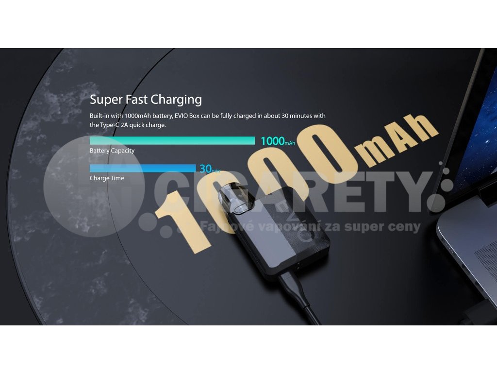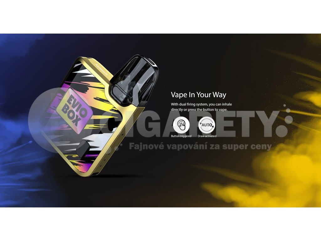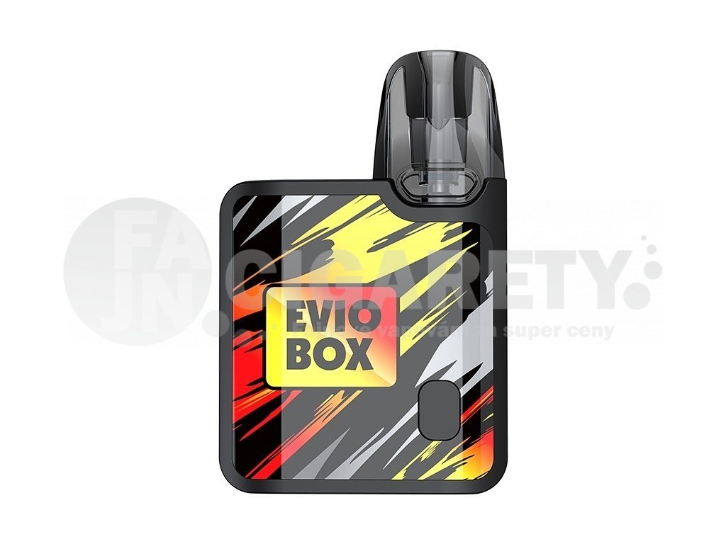 Kompaktní Pod elektronická cigareta, která se vejde pohodlně do kapsy nabízí dostatečný výkon a prvotřídní čip s technologií AST. Joyetech Evio Box nabízí vysokou rychlost žhavení už za 0,001 s, rychlé nabíjení pomocí moderního USB-C konektoru, dvojí způsob spínání potahu, a to jak plně automatický, tak manuální pomocí tlačítka. O samotný výkon s postarají hned tři režimy intenzity žhavení. Kapacita baterie 1000mAh, objem Cartridge 2ml s dvojitým Airflow systémem, rozměry 75 x 49 x 14 mm, 2x žhavící hlava Joyetech EN v SETU. Joyetech EVIO Box je vhodný jak pro klasické MTL šlukování, tak i pro utaženější DL, kdy je pára vdechována přímo do plic. Barevné provedení Gunmetal.