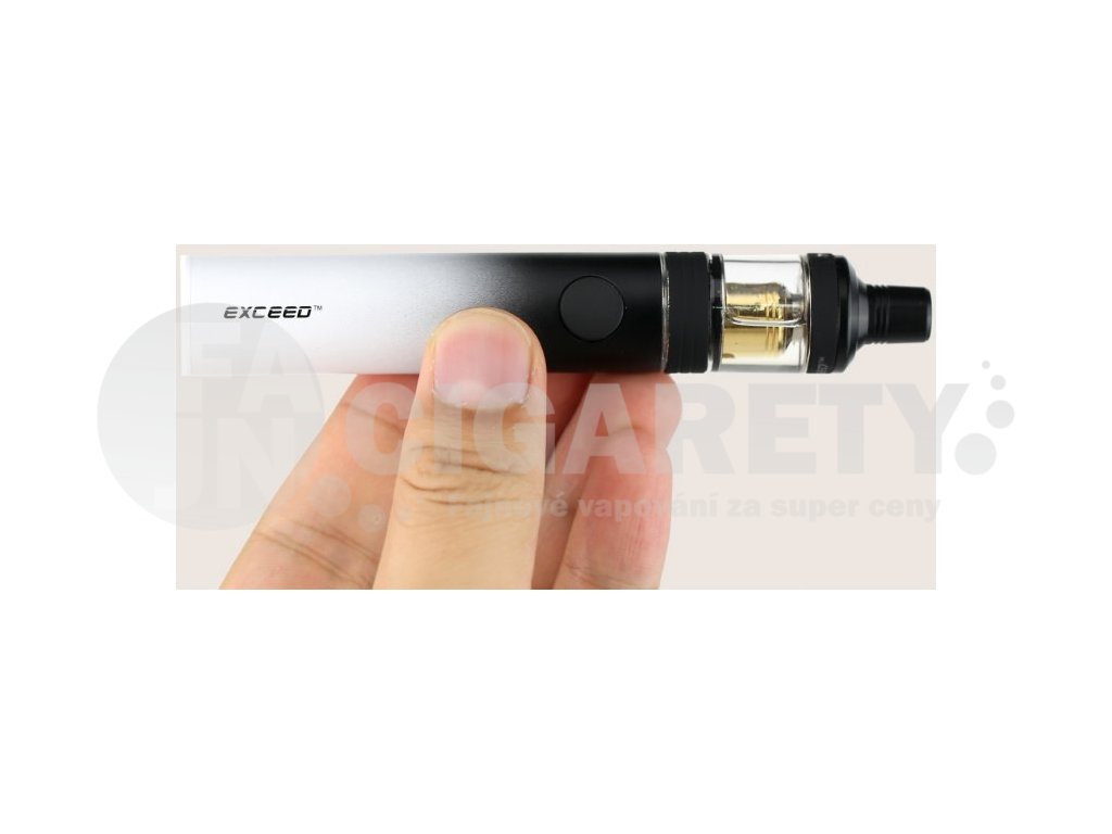 Elektronická cigareta Exceed D19 přináší pohodlné vapování s režimy konstantního a výstupního napětí. Tradiční tvar baterie představuje novinku v podobě horního LED indikátoru stavu nabití baterie (viz foto). Clearomizer Exceed o průměru 19mm spolupracuje s atomizery řady EX, které přinášejí dokonalou souhru autentické chuti liquidu a velké kouřivosti. Využívá systém horního plnění - po odšroubování vrchní části plníte liquid přímo do těla clearomizeru o objemu 2ml. Žhavicí hlavy EX nabízí dva odpory 0.5Ω (přímé potahování) a 1.2Ω pro ústa-plíce. Celý clearomizer je plně rozebíratelný = snadná údržba. Regulace přívodu vzduchu pro nastavení optimální kouřivosti se nachází ve spodní části.