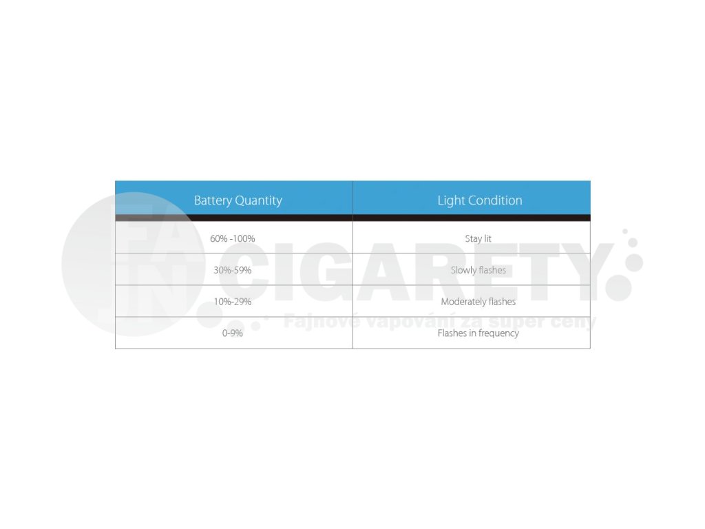 2 Mody: Přímé napětí - automaticky upravuje výkon cigarety na základě stavu nabití baterie