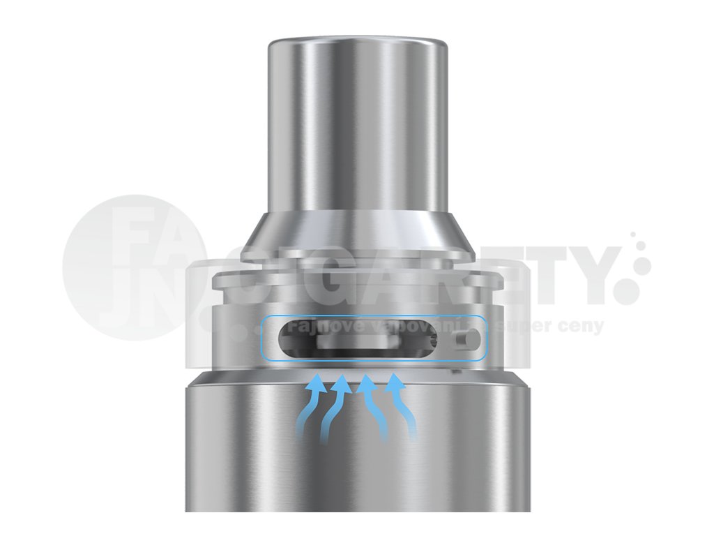Joyetech eGo AIO představuje verzi D22 XL, o které lze říci, že se jedná o velmi úspěšný upgrade této řady. První velkou a přívětivou novinkou je navýšení kapacity baterie na 2300mAh, která vystačí nabitá i silnému kuřákovi po celý den. Bez povšimnutí nezůstal ani clearomizer, který převzal funkčnost a podobu horní základny od oblíbeného clearomizeru CUBIS Pro. Vylepšený a větší přívod vzduchu nabízí systém potahování pusa-plíce, ale i přímo do plic. Kapacita vestavěné nádržky zdvojnásobila svůj objem na 4ml. Používá systém horního plnění - po odšroubování vrchní části, plníte liquid přímo do těla nádržky. Spolupracuje s atomizery řady BF. eGo AIO D22 XL je ALL in ONE elektronická cigareta, která svými vlastnostmi uspokojí jak úplné začátečníky, tak i zkušené uživatele, kteří si chtějí prožít vaping bez jakéhokoli nastavování (výkon je nastavován automaticky v závislosti na zvoleném odporu atomizeru). Vrchní odnímatelná část je opatřena dětskou pojistkou = ochrana před nechtěným otevřením. Atomizer již není ve spodní části, jako u ostatních clearomizerů, ale nachází se pod náustkem, kde je i regulace přívodu vzduchu. Clearomizer je podsvícen LED diodami. Při zamčené baterii dlouhým stiskem spínače si můžete vybrat barvu podsvícení clearomizeru (červené, žluté, zelené, modré, indigo, bílé a fialové). Nabíjení umožňuje micro USB vstup (e-cigaretu lze používat i při nabíjení).