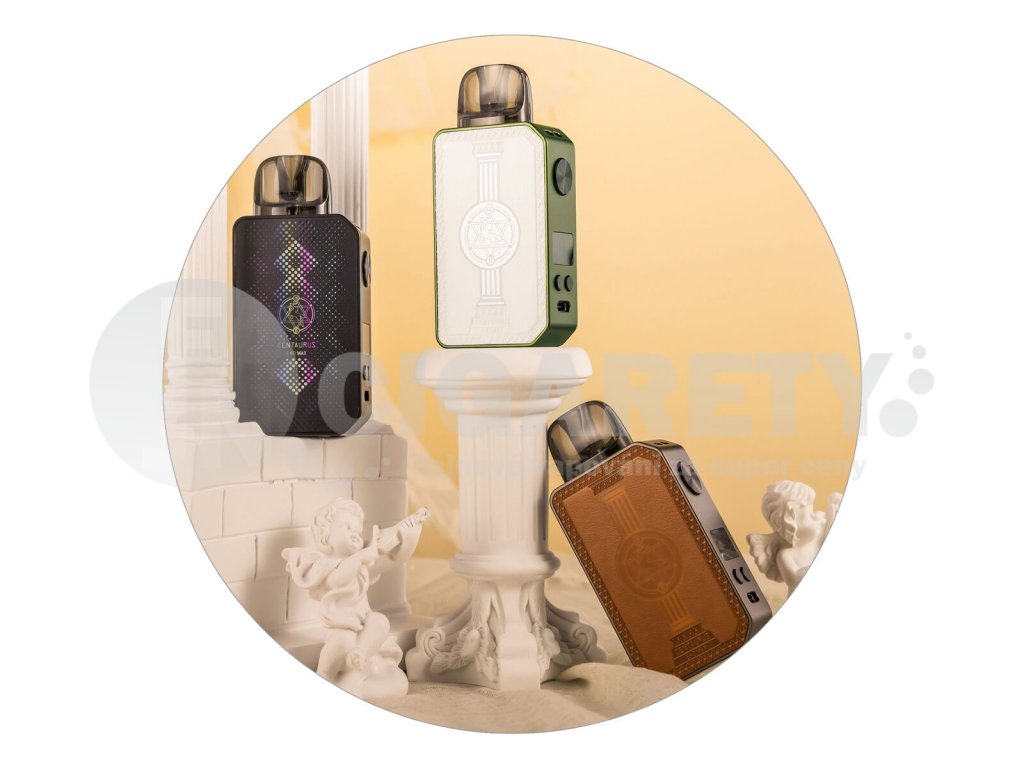 Objevte krásy zařízení Lost Vape Centaurus E40 MAX Pod Kit, ve kterém se snoubí designová elegance architektury starověkého Říma a moderní vapingové technologie. Tělo z hladkého hliníkového rámu doplňuje luxusní kožený přebal, nabídne tak skvělou odolnost ve spojení s nesmírně stylovým zpracováním. Užijte si bohatou a chutnou páru díky strhujícímu regulovatelnému výkonu až 40W a inovativním cartridgím E-Plus Pod. Tělo opatřené bočním panelem s podsvíceným římským sloupem nabídne integrovanou baterii s obrovskou kapacitou 1400mAh pro pohodový a nerušený vaping. Vapujte stylově a zažijte luxusní požitek při každém potahu.