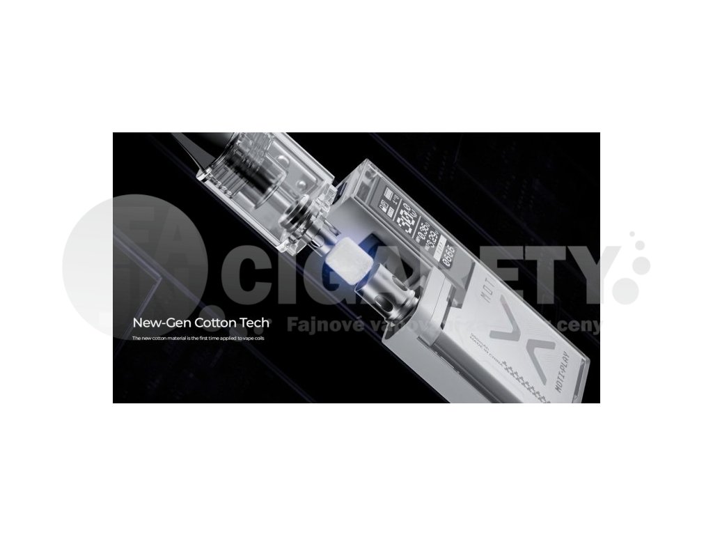 Futuristický designe, jednoduché ovládání, fantastická kouřivost, to je elektronická cigareta Moti Play Pod. Tělo baterie disponuje integrovaným monočlánkem o kapacitě 900mAh s regulovatelným výkonem až 30W, USB-C nabíjením, manuálním i automatickým spínačem a přehledným displejem. Cartridge o objemu 2ml disponuje vyměnitelnou žhavící hlavou Moti Play o odporu 0,45ohm a 1ohm. Důmyslná regulace přívodu vzduchu ve spodní části baterie pro optimální nastavení kouřivosti je už jen pomyslnou třešničkou na dortu.