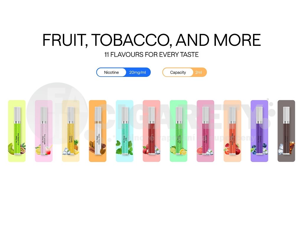 - 11 dostupných předplněných příchutí v 2ml cartridgích