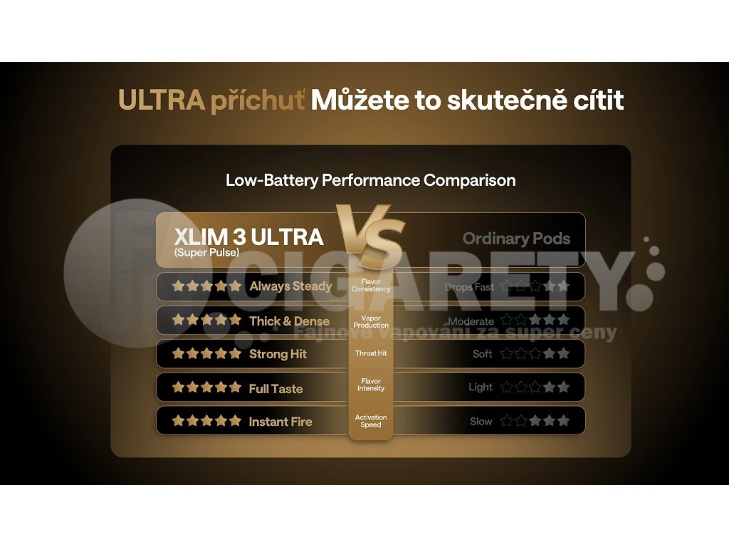 Technologický lídrOXVA XLIM 3 Ultra kombinuje nejmodernější Super Pulse System technologii, prémiový dotykový displej a inteligentní funkce do kompaktního balení, které ocení každý vaper hledající spolehlivost, výkon a moderní design. Ideální volba pro rok 2025, oceněná jako nejlepší pod systém na trhu. |