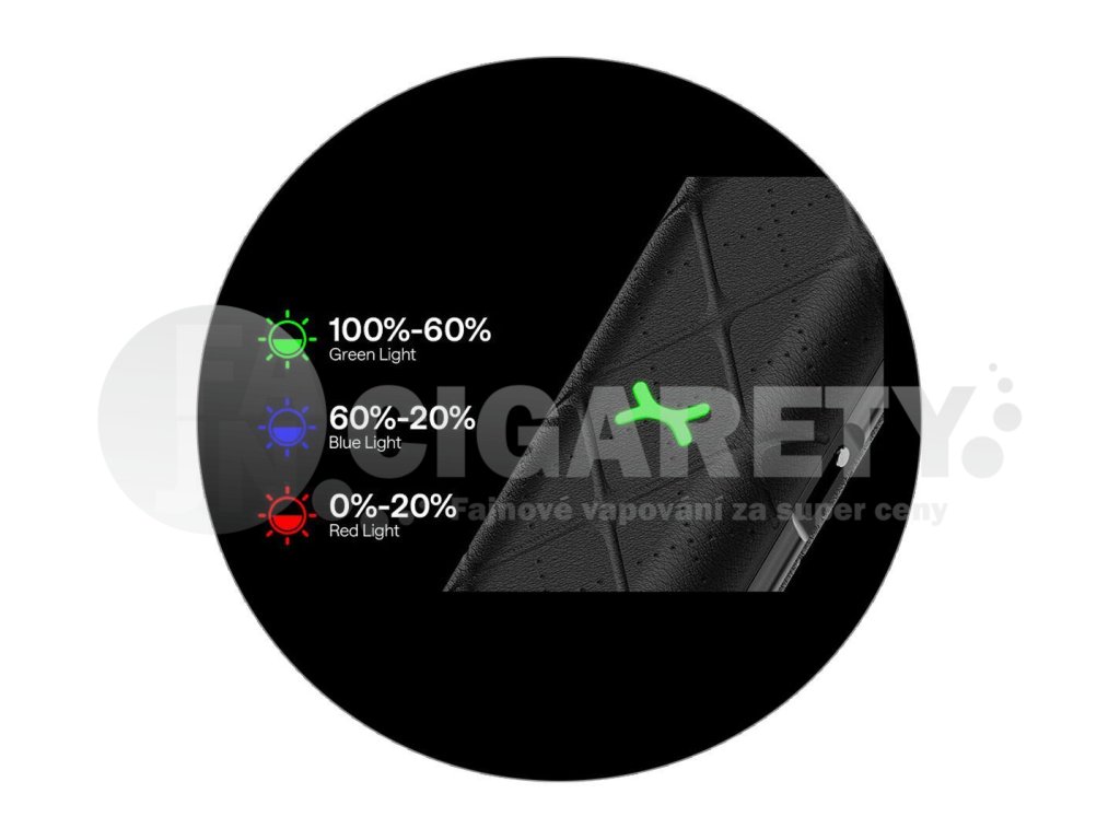 Přední panel zdobí tradiční LED indikační dioda ve tvaru písmene X. Tato dioda vás bude během potahu informovat o aktuálním stavu vaší baterie. Nabídne hned tři barvy pro rozdílnou procentuální hodnotu baterie, neunikne vám tak naprosto žádná informace a budete mít stálý přehled o tom, zda je potřeba e-cigaretu dobít nebo zda můžete nadále v klidu vapovat.