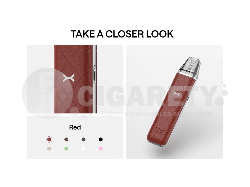 Prémiový designOXVA Xlim GO se pyšní exkluzivně zpracovaným tělem s tradiční, protáhlou konstrukcí, čímž navazuje na oblíbený design série Xlim. Inovativní je jemná textura povrchu, která je dosažena použitím luxusní lepené kůže na obou panelech zařízení. E-cigareta se tak perfektně drží v dlani a lepená kůže dotváří elegantní a sofistikovaný vzhled celého modelu. |