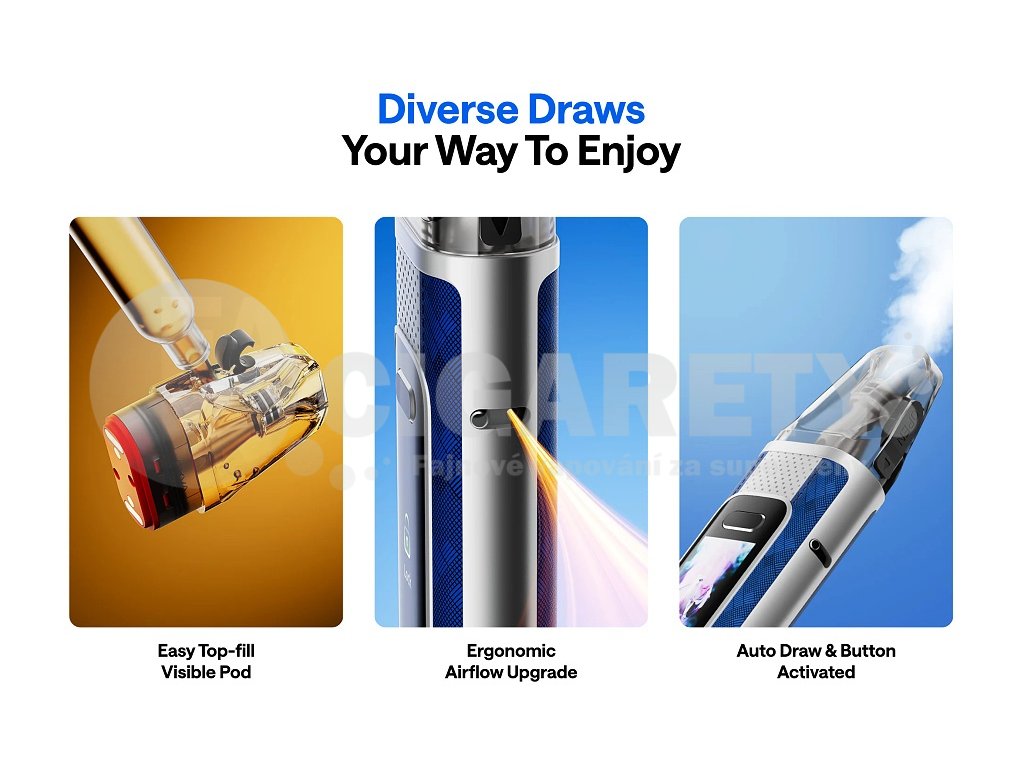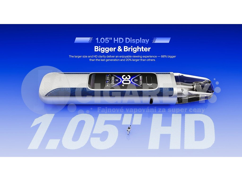 Vlajková elektronická cigareta s 1,05" HD barevným displejem a Pulse System technologií pro 80% konzistenci chuti i při nízkém nabití. Výkonná 1500 mAh baterie s rychlonabíjením USB-C za 30 minut, výkon 5-30W, Smart Wattage režim. Kompatibilita se všemi XLIM pody (V2, V3, EZ) s odpory 0,4-1,2Ω. UniTech 2.0 prodlužuje životnost podů o 30% a zvyšuje chuť o 50%. Horizontální airflow, duální aktivace (auto-draw + tlačítko). Rozměry 119,9×25,7×15mm, hmotnost 77g. Ideální pro MTL i RDL styl. Nejlepší pod systém 2025.