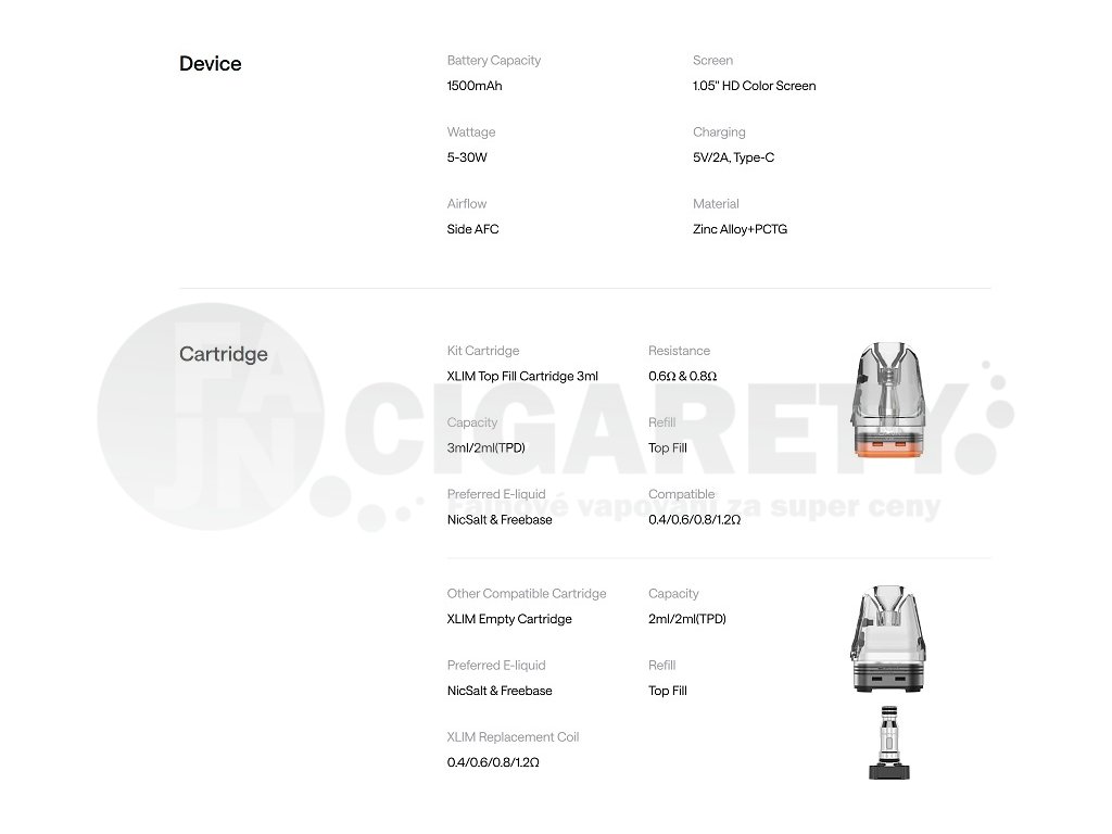 - Kompatibilní Pod Cartridge OXVA XLIM EZ naleznete zde