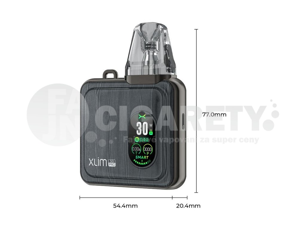 Do detailu promyšlený design, kvalitní použité materiály a jedinečná povrchová úprava. OXVA Xlim SQ Pro Pod Kit spojuje užitečné funkce a překrásné zpracování do jednoho jediného těla, přináší tak mimořádný požitek z vapingu, který lahodí také oku. Samozřejmostí je potom zachování tradiční krabičkové konstrukce s kompaktními rozměry, které se zastavily na 77 x 54.4 x 20.4 mm.