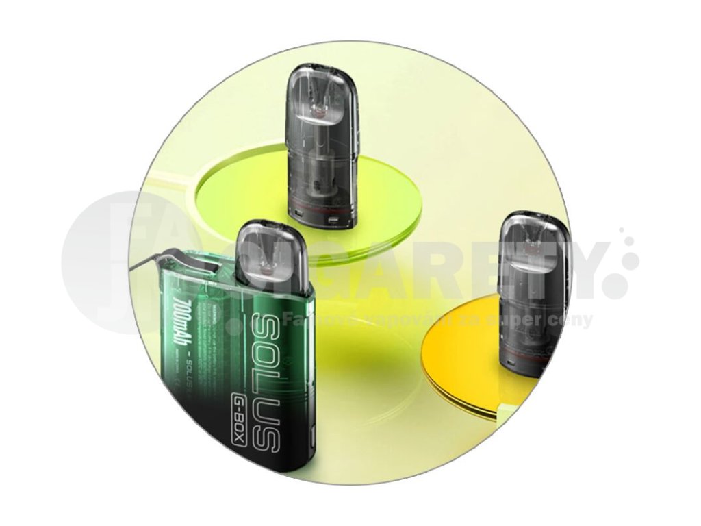 SMOK Solus G-Box Pod Kit je kompatibilní s platformou cartridgí Solus. Zařízení tak můžete osadit cartridgemi z modelů Solus 1 i Solus 2, jsou plně funkční. V základním balení najdete jednu cartridge Solus s objemem 2,5 ml, praktickým bočním plněním a integrovanou žhavící hlavou o odporu 0,9 ohm pro optimální MTL požitek.