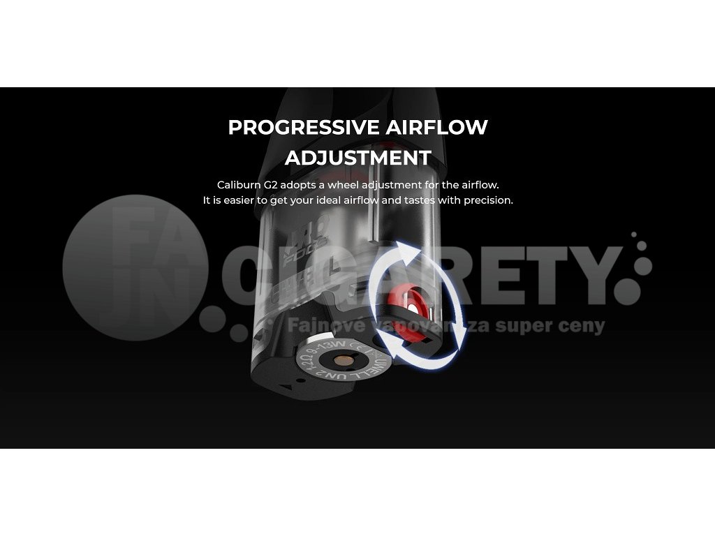 Velmi populární Pod elektronická cigareta Uwell Caliburn G se dočkala dalšího upgrade a přichází tak ve své druhé verzi, se kterou představuje nejen upravený design, ale také vylepšené parametry. V těle z hliníkové slitiny na Vás čeká integrovaná baterie s kapacitou 750mAh, která je vybavena barevnou LED pro přehlednou indikaci zbývající kapacity baterie. Pro rychlé nabíjení je na spodní straně e-cigarety připraven praktický USB-C port. Uwell Caliburn G2 nabízí jak automatický, tak i manuální systém žhavení. Vapování si tak užijete už po pouhém potahu z náustku, případně můžete i podržet tlačítko, se kterým přesně ovlivníte délku žhavení. Velkou změnou oproti předchozímu modelu je možnost nastavit si přívod vzduchu podle svých chutí a potřeb. Už není potřeba otáčet celou Pod Cartridge, samotný pod má nyní integrované kolečko, pomocí kterého nastavíte přesně takovou volnost potahu, jakou máte rádi. Rozměry 110,5mm x 22,5mm x 13mm, objem Pod Cartridge 2ml, konstanstní výkon 18W, materiál hliníková slitina, PA. Barevné provedení Shading Gray.