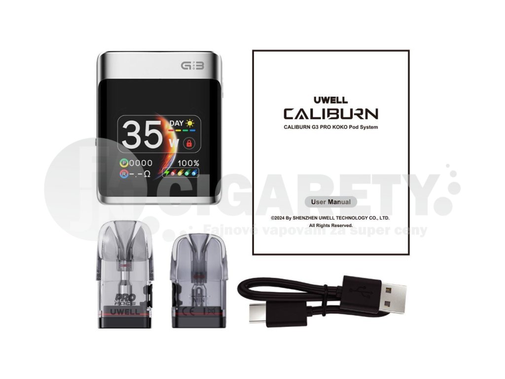 Po představení luxusního podu Caliburn G3 Pro s full-screen barevným displejem uvádí na trh výrobce Uwell také populární variantu KOKO. Tento kapesní pod systém kombinuje výhody dynamického rozhraní, obrovského displeje, odladěného systému airflow regulace a nastavitelného výkonu pro ten nejultimátnější požitek z vapování. Navržen pro uspokojení potřeb i těch nejnáročnějších vaperů, Caliburn G3 Pro Koko se pyšní ohromujícím barevným TFT displejem, obrovskou kapacitou integrované baterie 1250mAh a strhujícím výstupním výkonem až 35W. Díky podpoře cartridgí Caliburn G3 s technologií Pro-FOCS nabídne využití pro milovníky všech stylů vapování s maximálním důrazem na výraznou a bohatou chuť a dlouhou životnost. A s kvalitně zpracovanou kovovou konstrukcí a širokým výběrem barevných variant se stane ukázkou vašeho osobitého vkusu a stylu.