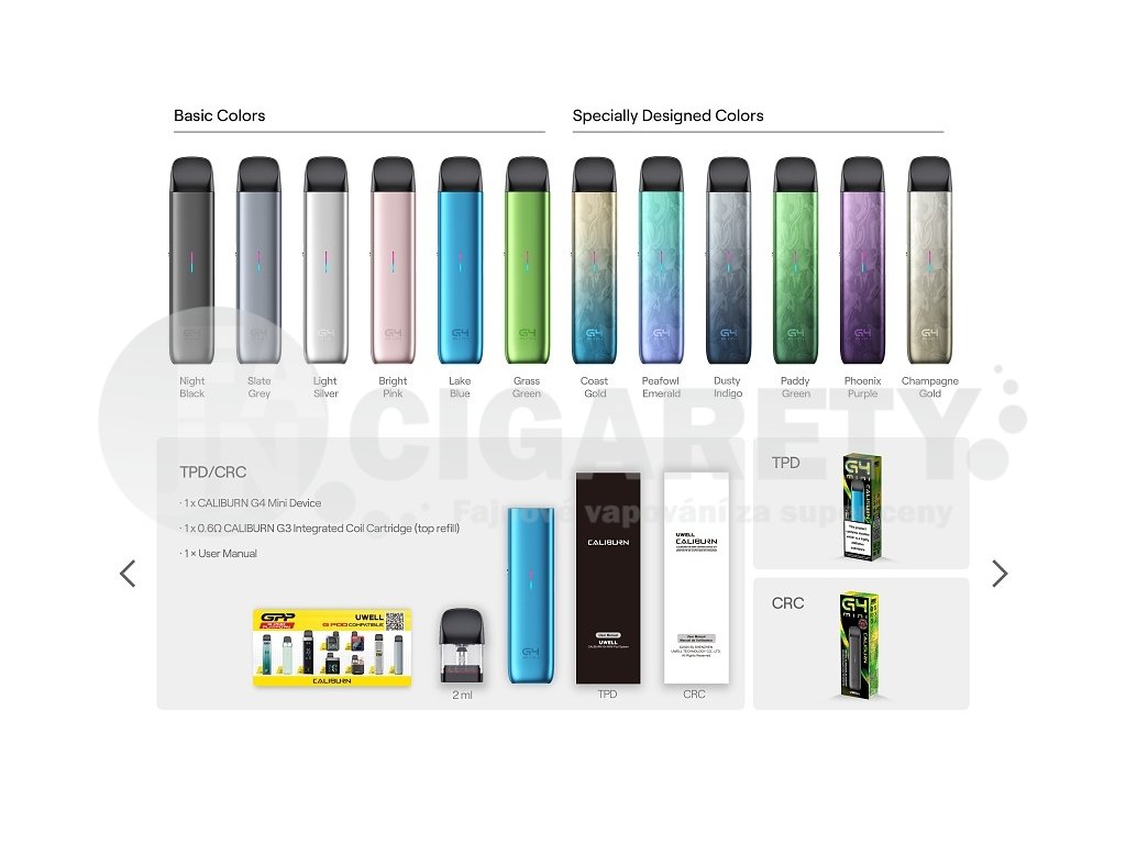 | Kategorie: | Elektronické cigarety Uwell Caliburn G4 Mini |