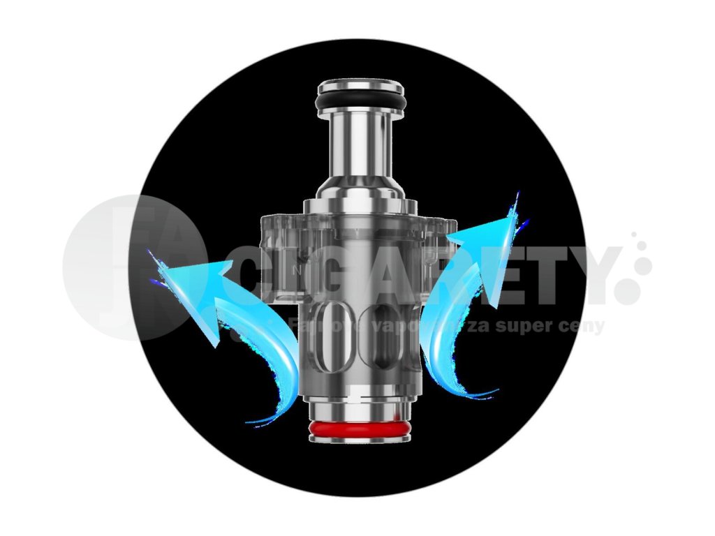 I přesto, že se na těle modelu Dillon nenachází tradiční manuální regulace airflow, budete si moci přívod vzduchu upravit. Model je vybaven praktickou funkcí duálního airflow systému. Cartridge tak můžete usadit na tělo hned dvěma směry, přičemž každý směr vám dodá rozdílnou tuhost při potahování. Rychlým pohybem si tak zvolíte volnější nebo utaženější potah.