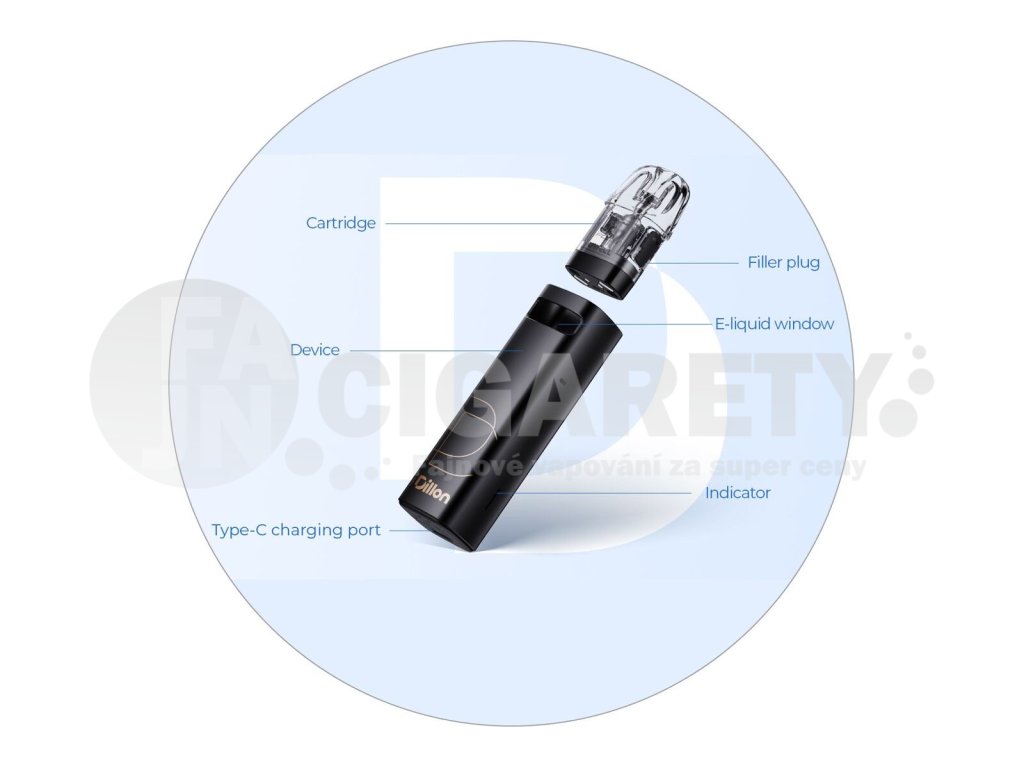 Na těle zařízení Dillon nenajdete žádné ovládací tlačítko, provoz je tak plně automatický. Po připojení cartridge si zařízení automaticky změří odpor spirály a nastaví potřebný výkon až do 25W zcela automaticky. Nemusíte se tak obávat jakéhokoliv složitého nastavení, nebo regulace. Po naplnění a usazení e-liquidu můžete začít rovnou potahovat z náustku a užívat si tak výjimečnou chuť vašeho oblíbeného e-liquidu.