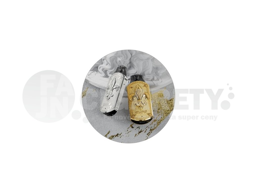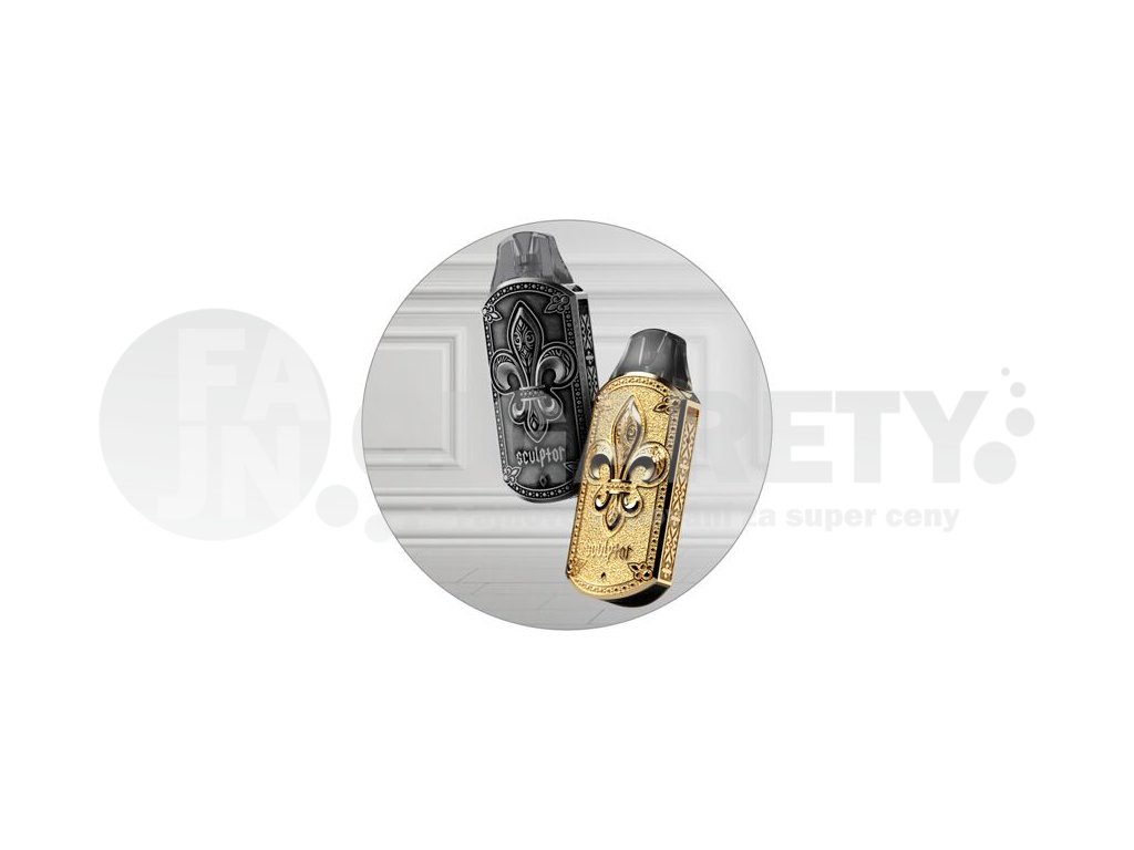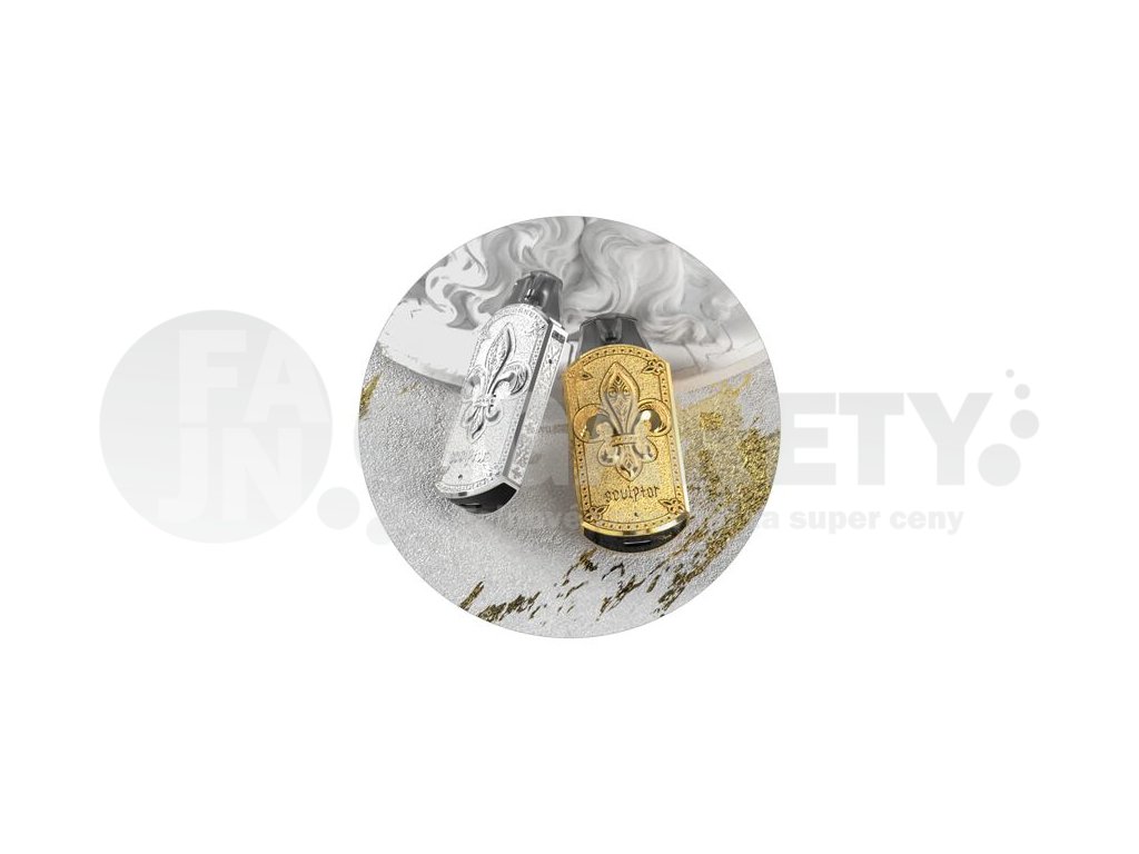 Uwell Sculptor Pod Kit je elegantní a nádherná e-cigareta, která se pyšní kovovou konstrukcí z kombinace zinkové slitiny, mědi a dalších materiálů. Její panel potom zdobí nádherná rytina v podobě Fleur de lis, heraldický znak lilie. Model Sculptor je geniální ukázkou pečlivého vývoje a vytříbeného vkusu designérů ze společnosti Uwell.