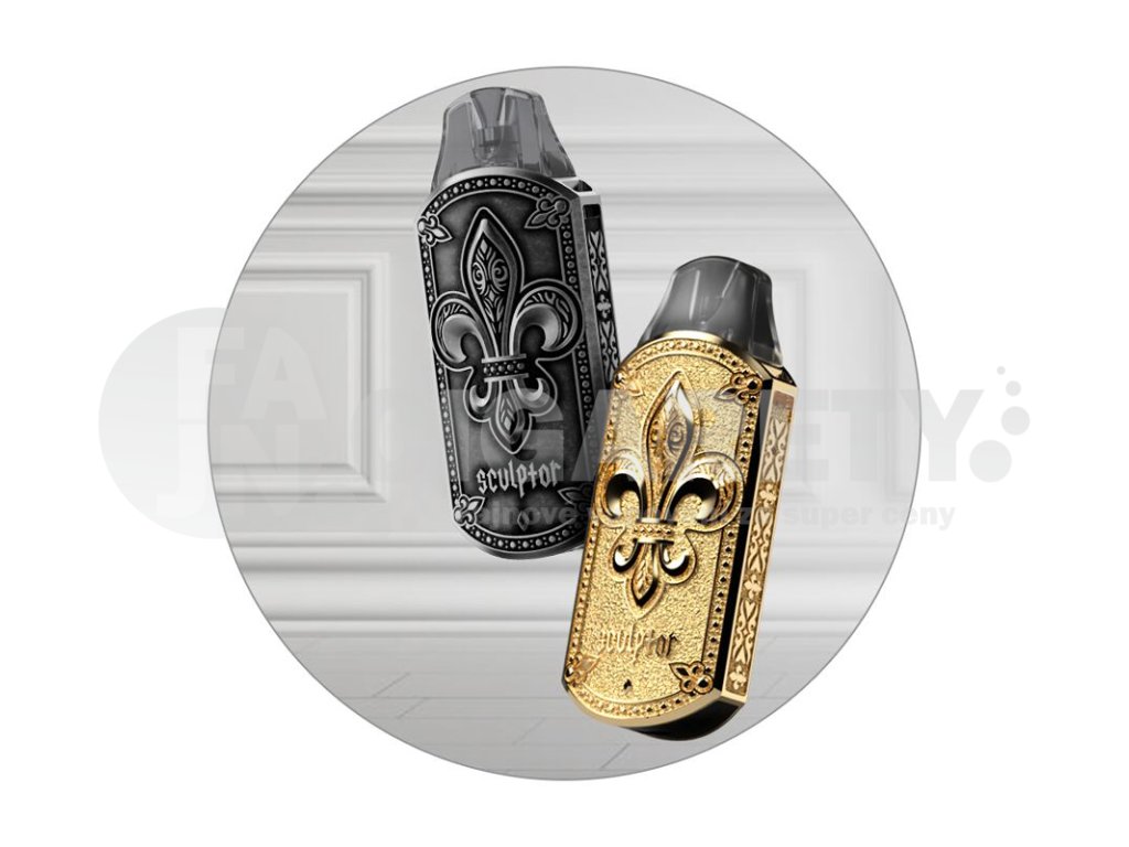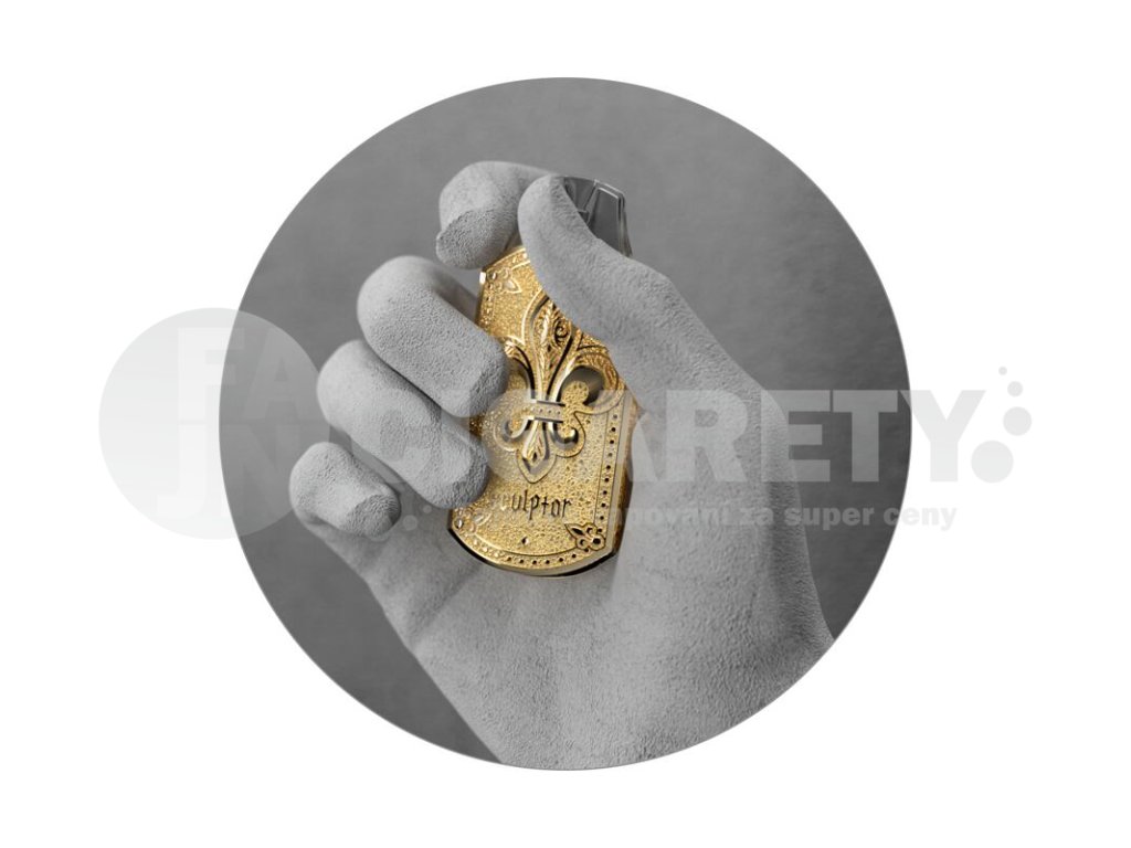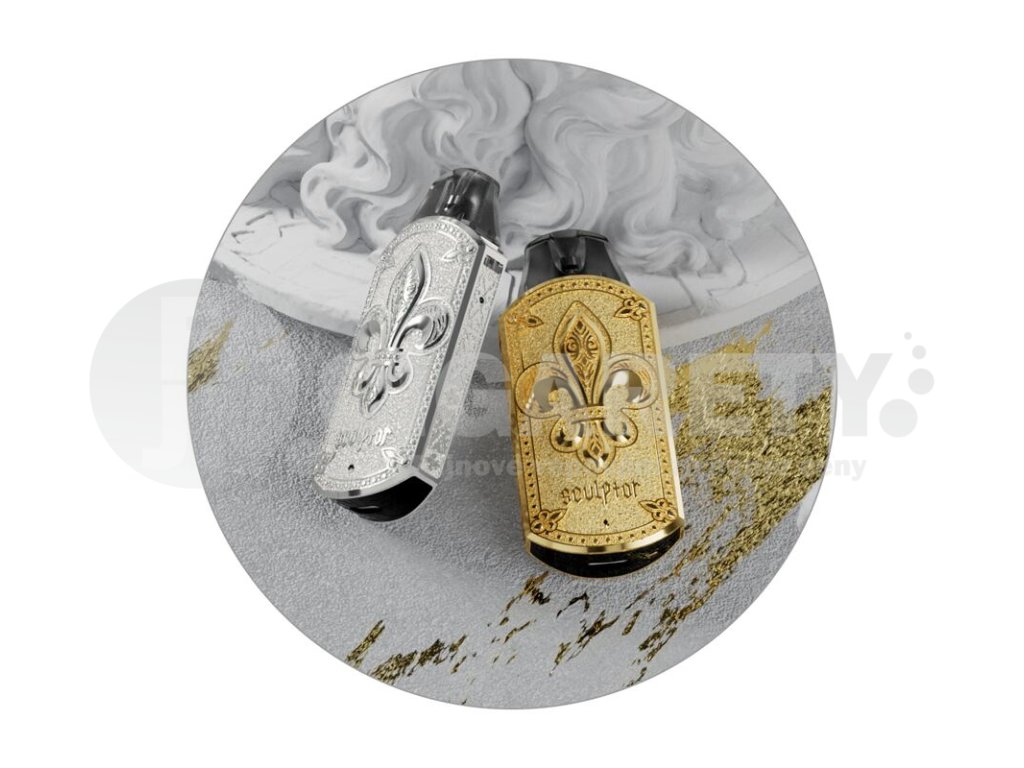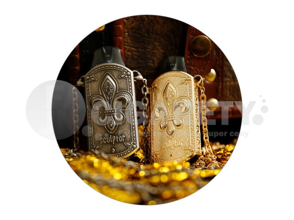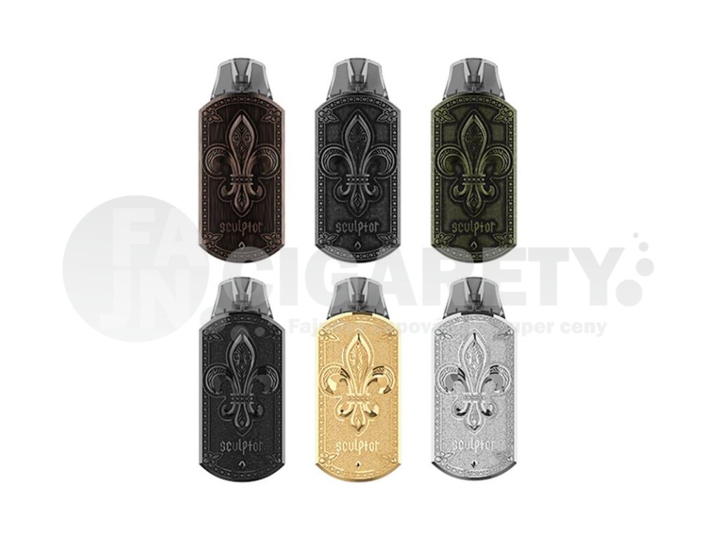 Uwell Sculptor Pod Kit je elegantní a nádherná e-cigareta, která se pyšní kovovou konstrukcí z kombinace zinkové slitiny, mědi a dalších materiálů. Její panel potom zdobí nádherná rytina v podobě Fleur de lis, heraldický znak lilie. Model Sculptor je geniální ukázkou pečlivého vývoje a vytříbeného vkusu designérů ze společnosti Uwell.