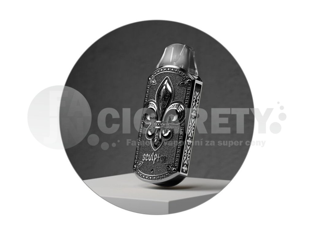 S netradičně zpracovanou a nádhernou e-cigaretou přichází výrobce Uwell. Model s názvem Uwell Sculptor Pod Kit se může pyšnit elegantní kovovou konstrukcí celého těla, které je výsledkem dlouhotrvajícího a pečlivého vývoje návrhářů této renomované společnosti. Kovové tělo zařízení potom zdobí nádherná rytina v podobě Fleur de lis, heraldického znaku lilie. Celé zařízení budí dojem luxusu také díky velkému množství barevných zpracování, ve kterých se vyrábí. Rozměry těla činí krásných 32.6 x 15 x 77.1 mm, zařízení perfektně padne do dlaně a příjemně se používá. V jeho těle se nachází integrovaná baterie s kapacitou 370 mAh, která je vhodná pro utaženější MTL potahování. V případě nutnosti budete moci baterii dobíjet prostřednictvím USB-C portu umístěném ve spodní části těla.