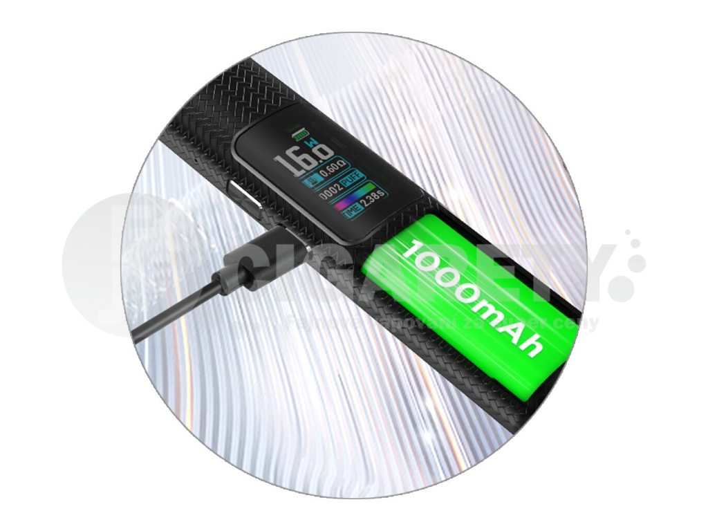 V jádru zařízení se nachází integrovaná baterie s obrovskou kapacitou 1000mAh pro dlouhé hodiny intenzivního vapování s minimem nabíjení. V případě nutnosti potom stačí pouze připojit USB-C kabel a baterii si můžete kdykoliv dobít. Lze dobíjet proudem až 1A.