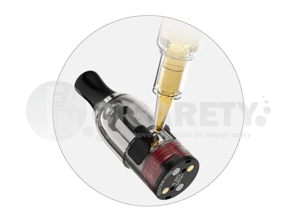 Cartridge modelu ECO ONE nabídnou základní objem 2 ml a velice rychlou metodu opětovného doplňování. V jejich boční části se nachází praktická silikonová záslepka, po jejímž otevření můžete ihned začít plnit. Celý proces plnění je rychlý a čistý, zabere jen pár vteřin. Poté se můžete opět pustit do vapování.