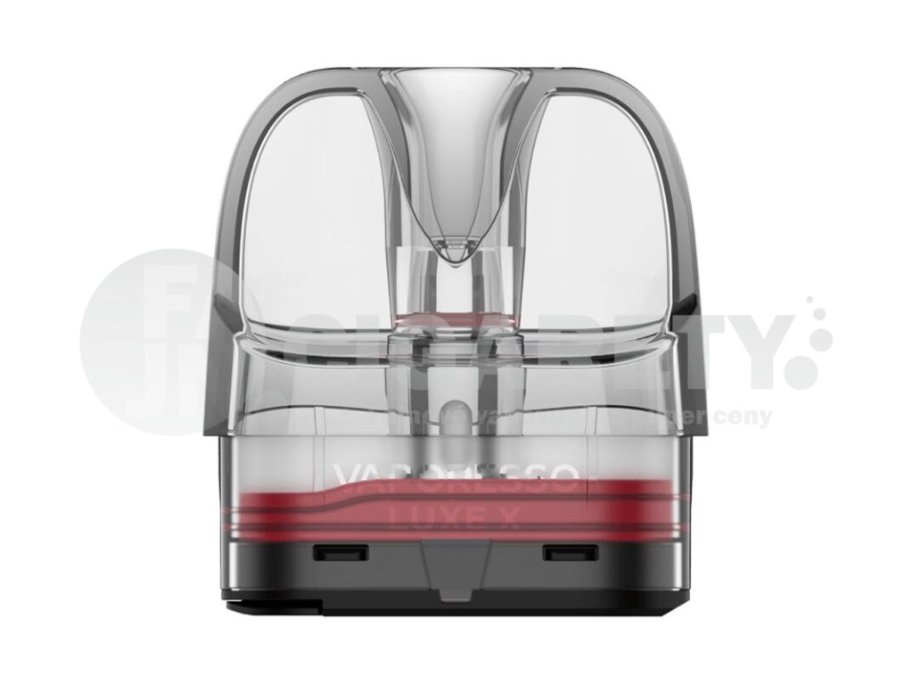 Součástí balení jsou hned dvě cartridge z oblíbené platformy Vaporesso LUXE X. Obě jsou opatřeny technologií COREX pro co nejvýraznější chuť, v jejich jádru se tedy nachází mesh pletivo s rychlým náběhem žhavení a velkou odpařovací plochou. Obě nabídnou také obrovský objem 5 ml. První z nich disponuje odporem 0,4 ohm (DL) a druhá nabídne odpor 0,6 ohm (RDL). Zařízení je kompatibilní také s dalšími pody ze série LUXE X, které se dají pořídit samostatně.