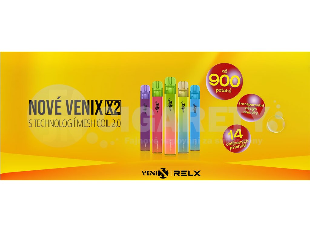 Elektronická cigareta VENIX X2 představuje novou vylepšenou verzi oblíbené řady jednorázových elektronických cigaret, která posouvá vaping zážitek na zcela novou úroveň. Tento prémiový produkt kombinuje elegantní design s pokročilou technologií, která uspokojí i ty nejnáročnější uživatele. S kapacitou až 900 potahů nabízí VENIX X2 delší životnost než standardní jednorázové e-cigarety, což z ní činí ideálního společníka na cesty i pro každodenní používání. Transparentní design nádržky umožňuje snadnou kontrolu zbývajícího množství e-liquidu, takže vždy víte, kdy je čas pro výměnu. Vybírat můžete z široké škály intenzivních příchutí, včetně oblíbených variant jako grape, strawberry nebo osvěžující mentol, přičemž každá z nich přináší autentický a bohatý chuťový zážitek.