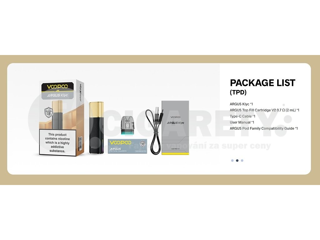 - 1x VOOPOO Argus Klyc tělo s baterií 1350mAh