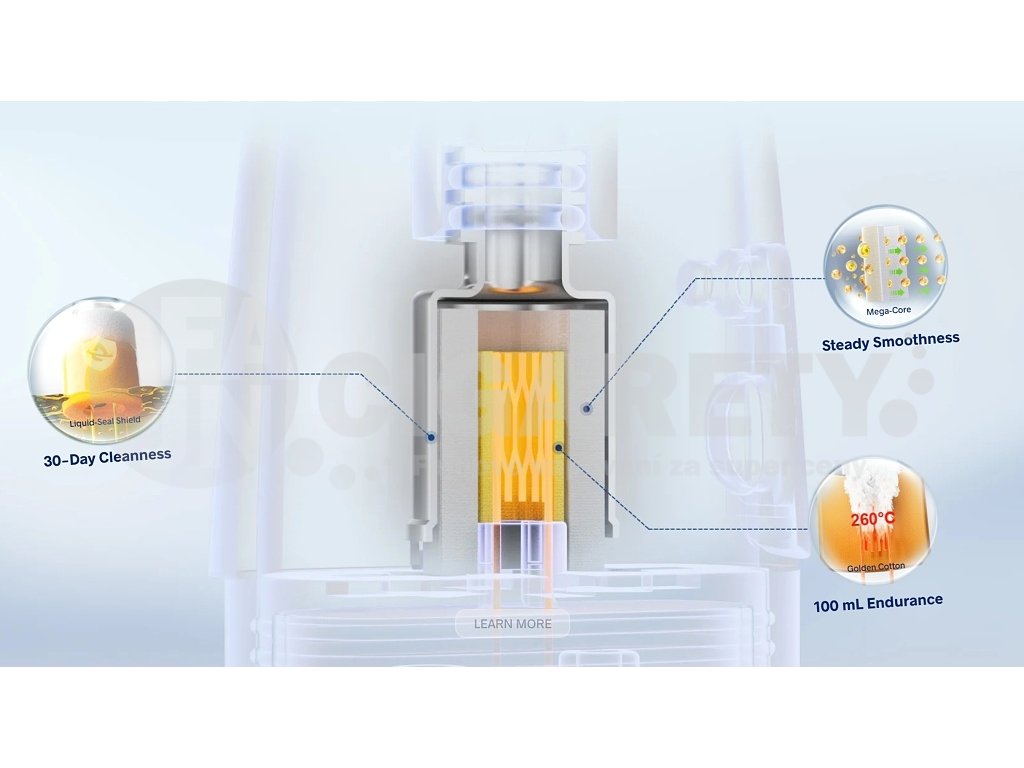Adaptivní výkonPokročilá technologie adaptivního nastavení automaticky upravuje výkon v rozsahu 5-30W podle typu použitého podu a intenzity potahu. Inteligentní čip vyhodnocuje odpor spirálky a sílu potahu v reálném čase, čímž zajišťuje konzistentní a optimální vapovací výkon bez manuálního nastavování. |