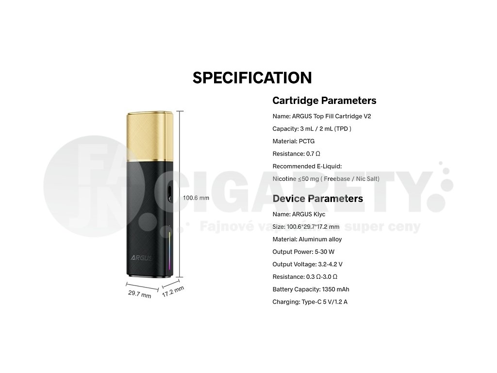 - 1x VOOPOO Argus Klyc tělo s baterií 1350mAh