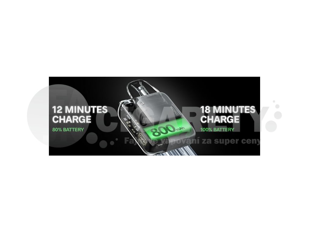Voopoo ARGUS P1 je futuristický POD systém navržený v mechanickém stylu, který přináší extra rychlé nabíjení 15W PD (Power Delivery). Za pouhých 18 minut dokáže PD nabít baterii z 0% na 100 %. Nejedná se však o žádnou nízkokapacitní baterii, ale o úctihodnou 800mAh baterii, kterou je ARGUS P1 vybaven. Napůl kovové a napůl průhledné tělo baterie demonstruje svojí robustní a sofistikovanou krásu. Inteligentní čip GENE. AI 1.2 automaticky upravuje výkon na základě tlaku potahu uživatele, čímž šetří energii a udržuje životnost baterie. Vyměnitelnou cartridge (POD) o objemu 2ml pohodlně naplníte díky jednoduchému bočnímu plnění. Na výběr máte mezi dvěma odpory a to 0,7ohm a 1,2ohm. Cartridge disponuje 4-otvorovým spodním přívodem vzduchu a společně s důmyslnou regulací přívodu vzduchu zajišťuje skvělou dýmivost a autentickou chuť liquidu.