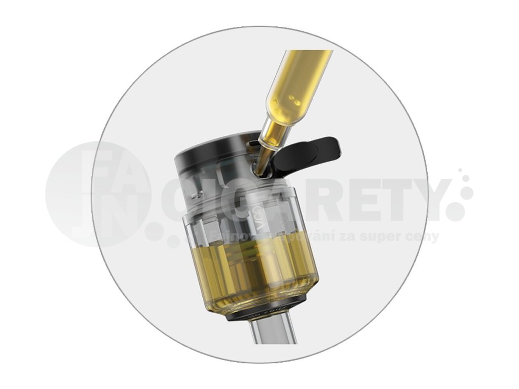 Cartridge ve vrchní části se pyšní skvělým objemem 3ml. Do cartridge tak doplníte potřebné množství e-liquidu pro dlouhé hodiny nerušeného vapování vašeho oblíbeného e-liquidu. V případě potřeby pak můžete jednoduše cartridge vysunout a během pár vteřin ji znovu doplnit díky bočnímu systému plnění se silikonovou záslepkou.