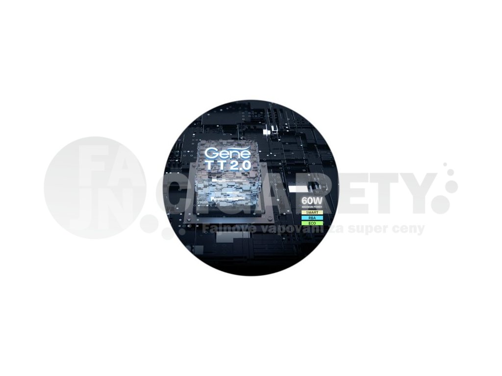 Tělo e-cigarety Drag E60 je osazeno čipsetem GENE TT 2.0, který se postará o hladký chod celého zařízení a zajistí bleskurychlý náběh žhavení. Díky čipsetu se můžete těšit také na luxusně zpracované výstupní režimy a na skvělý power management. Hlavní výsadou je potom podpora inteligentního režimu SMART, díky kterému si zařízení samo nastaví doporučený výkon dle odporu tělíska. Čipset nabídne rovněž přepracované uživatelské rozhraní pro ještě jednodušší nastavení.