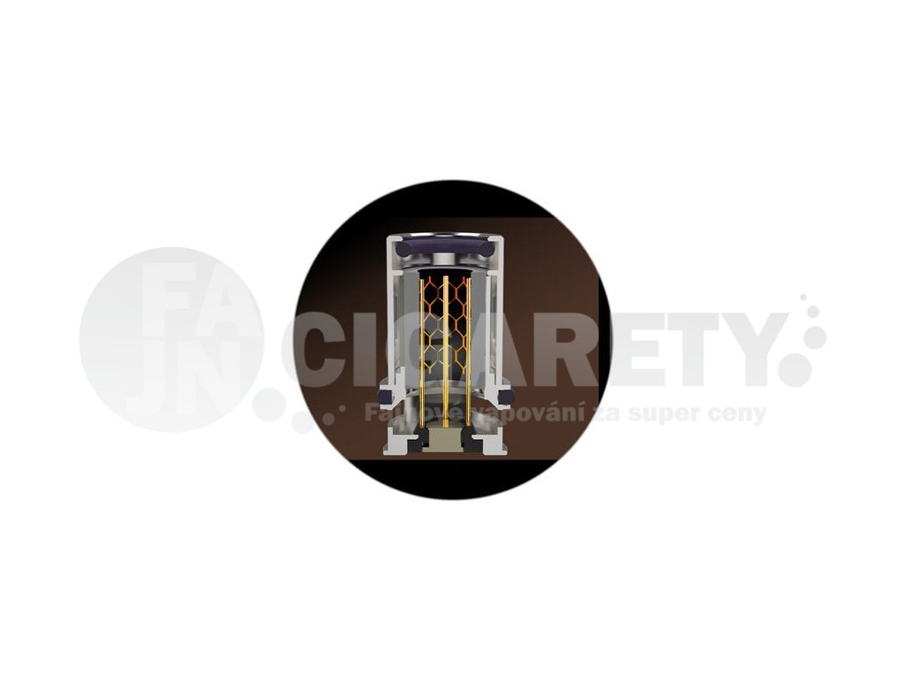 Uvnitř těla na vás čeká integrovaná baterie s obrovskou kapacitou 2550 mAh, která zajistí nejen hladký chod a plynulý provoz, ale také rychlý náběh žhavení a stabilní výkon. Díky velké kapacitě baterie se můžete rovněž těšit na mnohahodinové intenzivní používání bez potřeby dalšího nabíjení. V případě nutnosti pak postačí kdykoliv připojit USB-C kabel ke konektoru v přední části pro rychlé a efektivní dobití baterie.