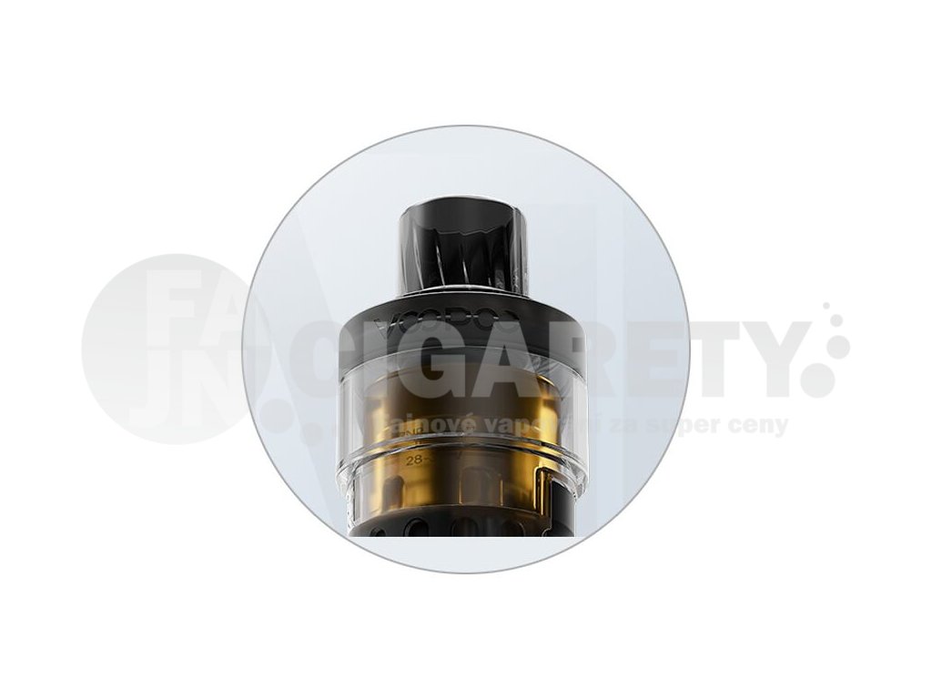 Cartridge VooPoo PnP Pod II ve vrchní části se pyšní obrovským objemem. Do cartridge lze doplnit až 5 ml e-liquidu, díky této velké kapacitě tak nabídne dlouhou výdrž na jedno naplnění i v případě intenzivnějšího DL potahování. V případě potřeby navíc můžete cartridge kdykoliv odpojit a doplnit ji prostřednictvím spodního systému plnění.