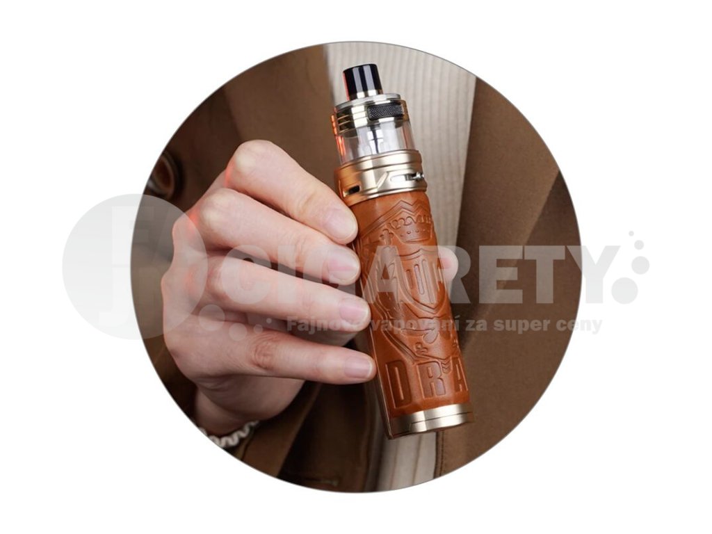 | Přepracovaný design Nová verze populární e-cigarety VooPoo Drag X Pod Kit přichází s ještě ergonomičtějším zpracováním a s ještě stylovějším designem. Kovové tělo zařízení je doplněno o stylový kožený potah s motivem série v zadní části. Rozměry e-cigarety činí jen 127,5 x 32,5 x 28 mm. Díky zaoblené zadní části se perfektně drží v ruce a působí nesmírně robustním a bytelným dojmem, nechybí jí však také punc elegance. |