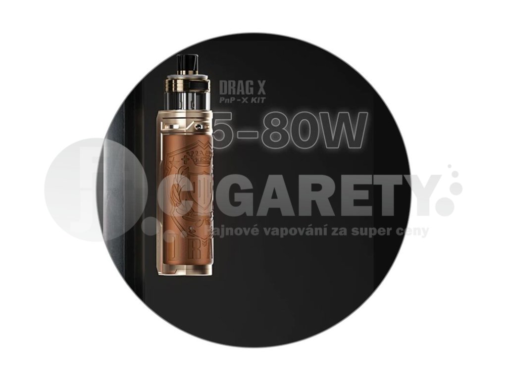 Legendární modely e-cigaret VooPoo Drag S a Drag X se vrací v nové podobě s ještě stylovějším designem a ještě ergonomičtější konstrukcí. Větší sourozenec modelu Drag S PnP-X Pod s názvem Drag X PnP-X Pod nabídne slot pro vlastní externí baterii a ohromující výstupní výkon, který dosahuje až 80W. Nesmí chybět celá řada užitečných prvků pro každodenní používání. Nabídne krásné designové zpracování a bytelnou kovovou konstrukci, kterou doplňuje stylový kožený panel v zadní části s motivem série Drag Knight. Rozměry celé e-cigarety činí 127,5 x 32,5 x 28 mm. Skvěle padne do ruky a pohodlně se užívá. Ve spodní části potom najdete slot pro baterii typu 18650, díky čemuž se můžete těšit na ohromující výkon a pohodový chod zařízení. Ten lze regulovat v rozpětí 5 - 80 W přímo na předním ovládacím panelu. Baterii budete moci navíc pohodlně dobíjet přímo uvnitř e-cigarety díky portu USB-C s proudem až 2 A.