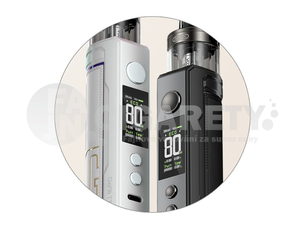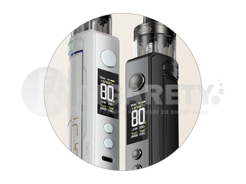 V jádru e-cigarety se nachází upgradovaný čipset Gene.TT 2.0, který nabídne perfektní výsledky při používání a přehledné uživatelské rozhraní. Všechny potřebné funkce ovládáte pomocí panelu v přední části, který tvoří ovládací tlačítka a velký barevný displej. E-cigareta pracuje hned se třemi výstupními režimy, pro příznivce jednoduchého provozu je připraven režim SMART, který nastaví výkon automaticky za vás a zároveň omezí rozsah regulovaného výkonu, aby nedošlo k poškození hlavy. Pro pokročilejší uživatele je připraven režim RBA pro vlastní regulaci výkonu v libovolném rozpětí mezi 5 - 80 W a nový režim ECO, který prodlouží životnost vaší baterie. Ve spojení s novým typem cartridge PnP-X s objemem 5 ml a novými hlavami PnP-X se jedná o vynikající DL zařízení pro náročné, které ocení také naprostí začátečníci.