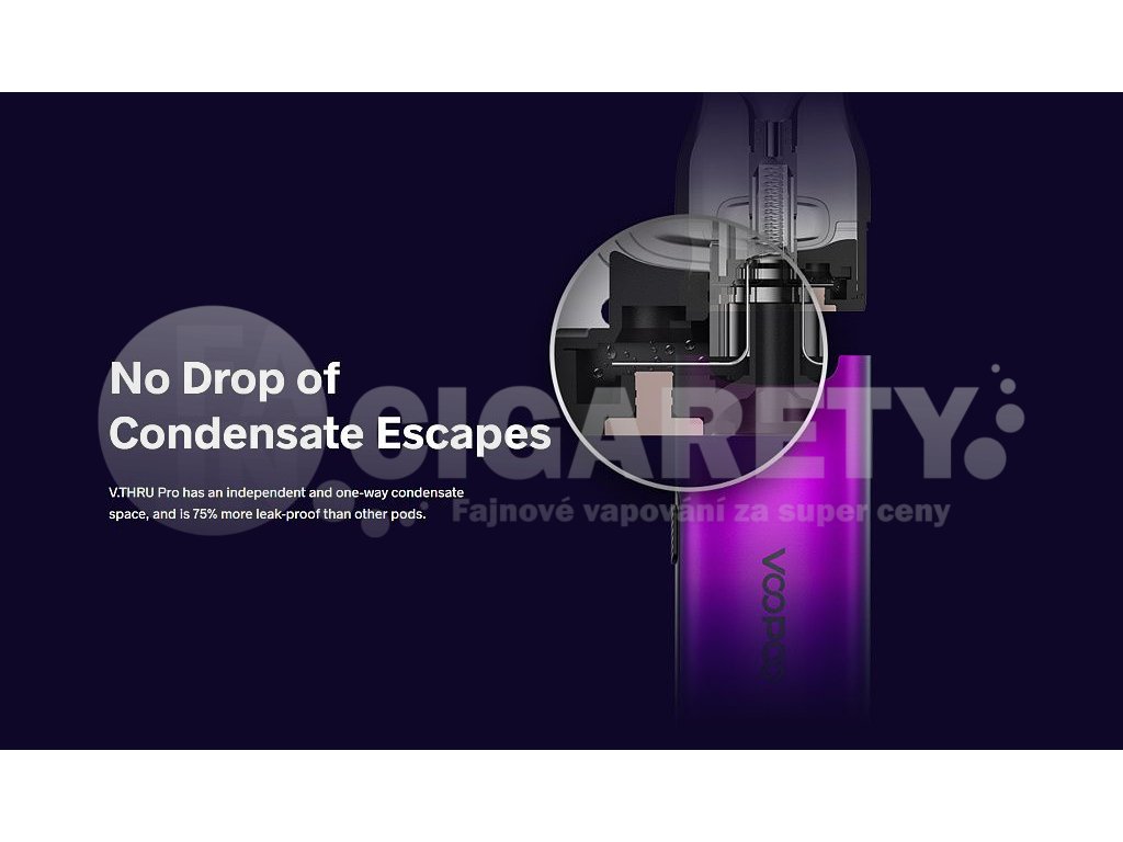 Elektronická cigareta Voopoo V.THRU Pro Kit je snadno použitelná a dostupná startovací sada, který má malé rozměry, ale velký výkon. Je napájena vestavěnou baterií o kapacitě 900mAh s rychlonabíjecím portem typu USB-C 5V/1A. Díky beztlačítkovému ovládání a prvotřídnímu designu se V.THRU Pro snadno používá, přenáší a její konstrukční provedení přináší opravdu příjemný požitek z vapování.