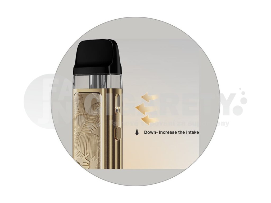 Chcete si vyladit tuhost potahu přesně svým představám a dosud vám to nebylo umožněno? S příchodem Vinci Pod Royal Edition se situace mění. V boční části se nachází praktický posuvný systém airflow, jehož posouváním nahoru, nebo dolů ovládáte šířku otvoru pro přívod vzduchu. Můžete si tak potah utáhnout na úroveň běžných cigaret, nebo si můžete dle potřeby airflow otevřít, abyste získali větší množství páry a vzdušnější potah. Volba je ve vaších rukách.
