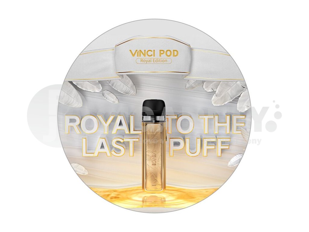 Verze Vinci Pod Royal Edition je kompatibilní s celou rodinou cartridgí Vinci Pod. Nově přidává dvě cartridge s objemem 2 ml a integrovanými mesh tělísky pro ještě lepší zachycení chuti a rychlejší náběh žhavení. Odpor první cartridge činí 0,8 ohm, odpor druhé cartridge je potom 1,2 ohm. Obě tyto nové cartridge najdete v základním balení. Novinkou je také přítomnost rychlého systému vrchního plnění, kdy stačí jen sejmout náustek a během pár vteřin opětovně doplnit e-liquid.