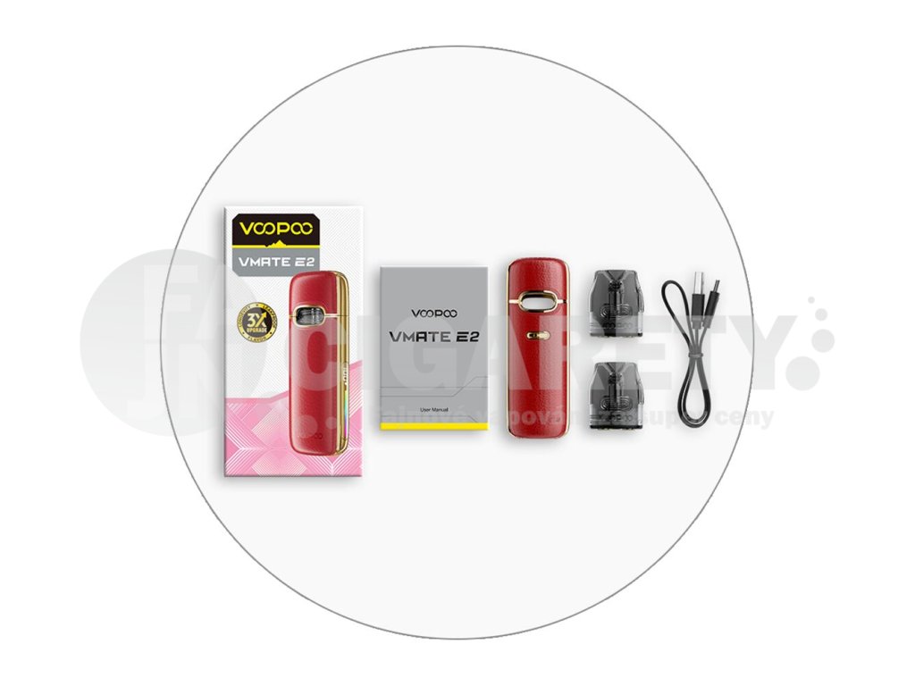 Ikonický design elektronické cigarety VooPoo Vmate E přenáší výrobce VooPoo také do druhé generace s názvem Vmate E2, nově však nabídne řadu vylepšení pro ještě větší komfort při vapování a pro ultimátní požitek z potahu. Krásný panel z ekokůže se nyní nachází na obou panelech zařízení, design je celkově ještě odladěnější, zaoblenější a příjemněji se používá. Díky novým cartridgím Vmate V3 Top Fill s delší životností, výraznějším podáním chuti a skvělou kapacitou si můžete užívat plnohodnotný vaping bez kompromisů. A s větší kapacitou integrované baterie, která se dostala až na 1500mAh nabídne možnost intenzivnějšího potahování s mnohem delší dobou provozu na jedno nabití. VooPoo Vmate E2 Pod Kit je opravdová stylovka.