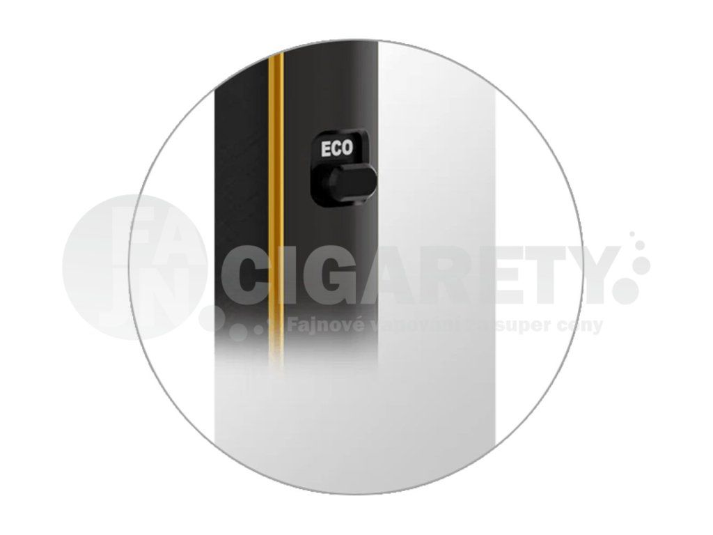 Oblíbený ECO režim je zpět. U e-cigarety najdete rovnou dva výstupní režimy, přičemž přepínání mezi nimi je snazší, než kdykoliv předtím. Na předním panelu najdete manuální přepínač, jedním pohybem prstu si tak přepínáte mezi výchozím režimem POWER nebo úsporným režimem ECO. V režimu ECO nastaví e-cigareta výkon automaticky za vás a zároveň dojde k potemnění displeje a snížení jasu, aby nedocházelo k nadměrnému přetěžování a vybíjení baterie.