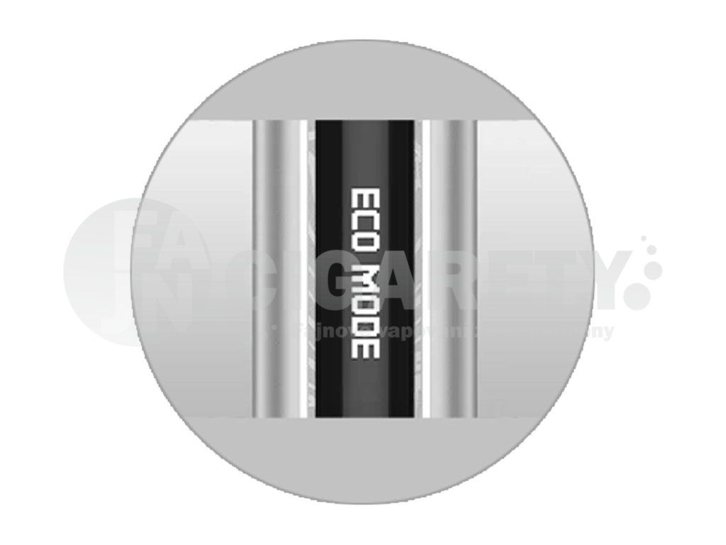 Oblíbený ECO režim je zpět. U e-cigarety najdete rovnou dva výstupní režimy, přičemž přepínání mezi nimi je snazší, než kdykoliv předtím. Na předním panelu najdete manuální přepínač, jedním pohybem prstu si tak přepínáte mezi výchozím režimem POWER nebo úsporným režimem ECO. V režimu ECO nastaví e-cigareta výkon automaticky za vás a zároveň dojde k potemnění displeje a snížení jasu, aby nedocházelo k nadměrnému přetěžování a vybíjení baterie.
