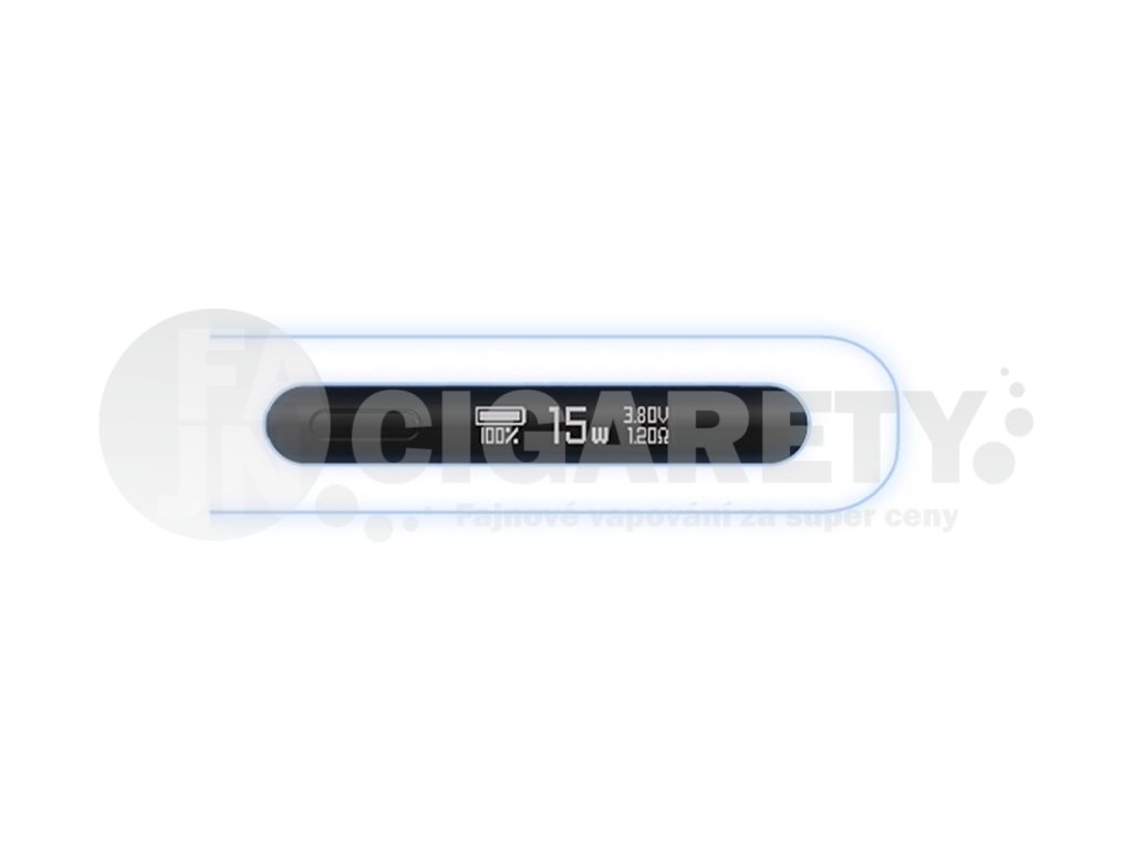 V boční části se nachází přehledný a jasný OLED displej se stručným a uživatelsky přívětivým rozhraním. Displej vás informuje o aktuálním stavu baterie, výstupním napětí, odporu cartridge a o nastaveném výkonu. Ten je možné regulovat v rozpětí 5 - 25 W. Výkon si navíc nastavíte pomocí jediného tlačítka, celkové nastavení je tak nesmírně rychlé a intuitivní.