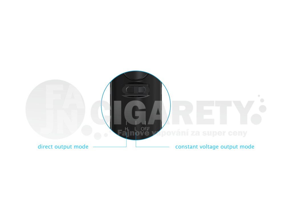 2 Mody: Přímé napětí - automaticky upravuje výkon cigarety na základě stavu nabití baterie