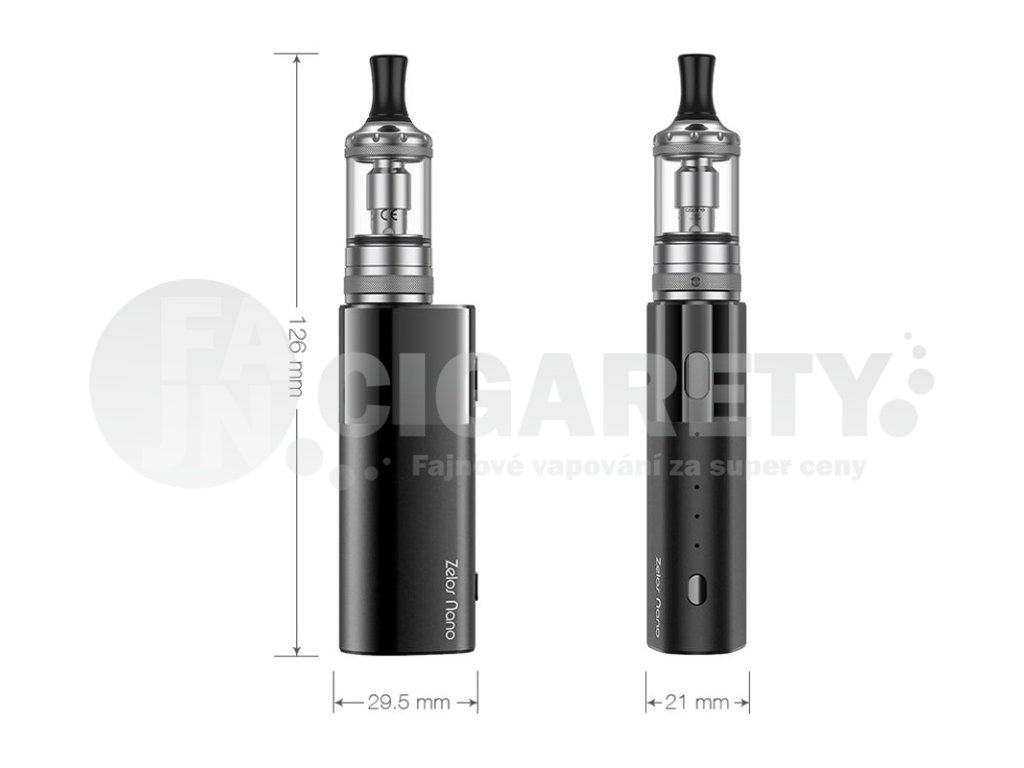 Aspire Zelos Nano Kit je nejkompaktnějším a nejpraktičtějším modelem z řady gripů Zelos. Nabídne rozměry 126 x 21 x 29,5 mm s clearomizérem. Perfektní ergonomii a pohodlné držení v ruce během potahování zajišťuje konstrukce z lehoučké hliníkové slitiny a zaoblené hrany těla modu. Mod Zelos Nano je nejen příjemně ergonomický, ale také stylový, rozhodně s ním budete všude na očích.