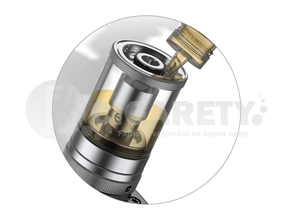 Společně s modem Zelos Nano nesmí chybět ani menší clearomizér. Výrobce si pro vás do kompletní sady přichystal nejmenší verzi populárního tanku Nautilus s názvem Nautilus Nano. Ten nabídne objem 2 ml, jednoduché šroubovací vrchní plnění a spodní regulaci airflow s řadou otvorů, kterou můžete znát už z předchozích verzí tanku Nautilus.